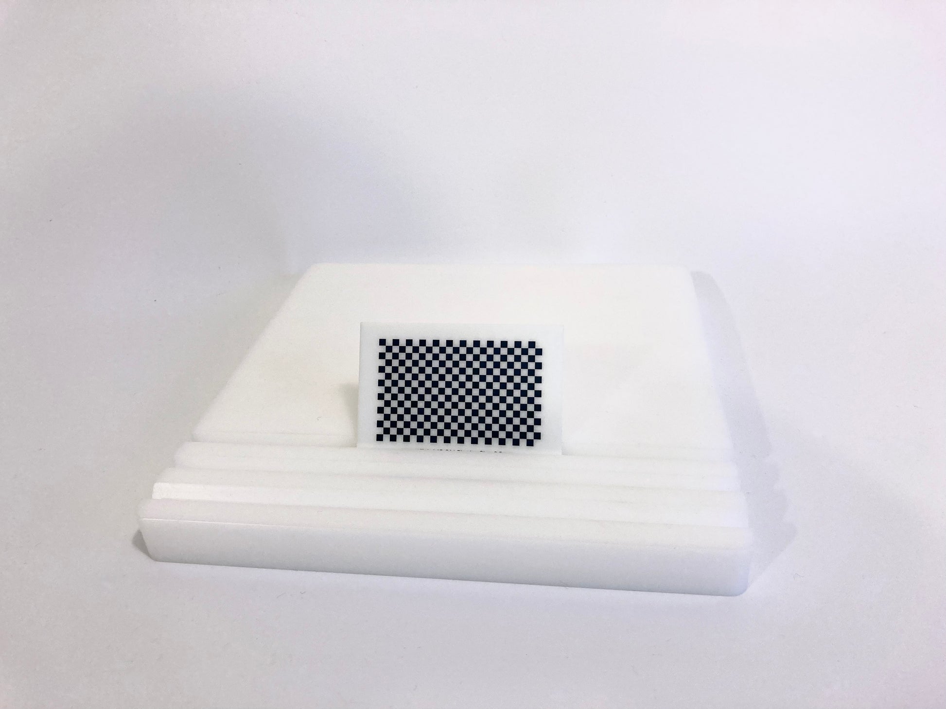 The substrate is carefully machined to size and fitted with 6mm corner radiuses to maximize robustness. The patterns are transferred to the composite material using a specialised precision direct UV (Ultra-Violet) printing process resulting in a durable matte finish. Through extensive testing, we have found this process to be ideal for machine vision applications, where both accuracy, good optical performance and physical robustness are of utmost importance.