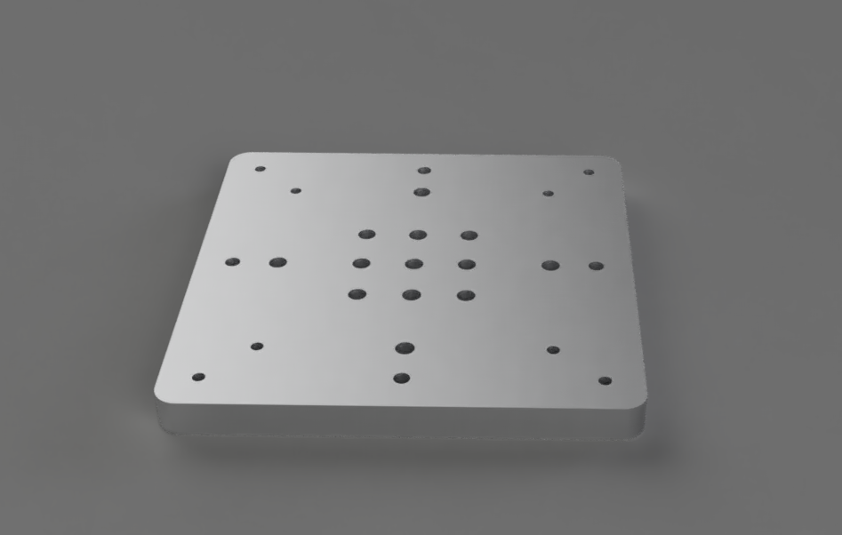Our mounting fixture features three tripod threaded holes and holes perfectly located for quick release plate alignment pins. Using the alignment pin and/or multiple screws is essential to keep plates from unscrewing. Alternatively, the unused area of the base plate can easily be drilled and tapped for user-specific mounting.